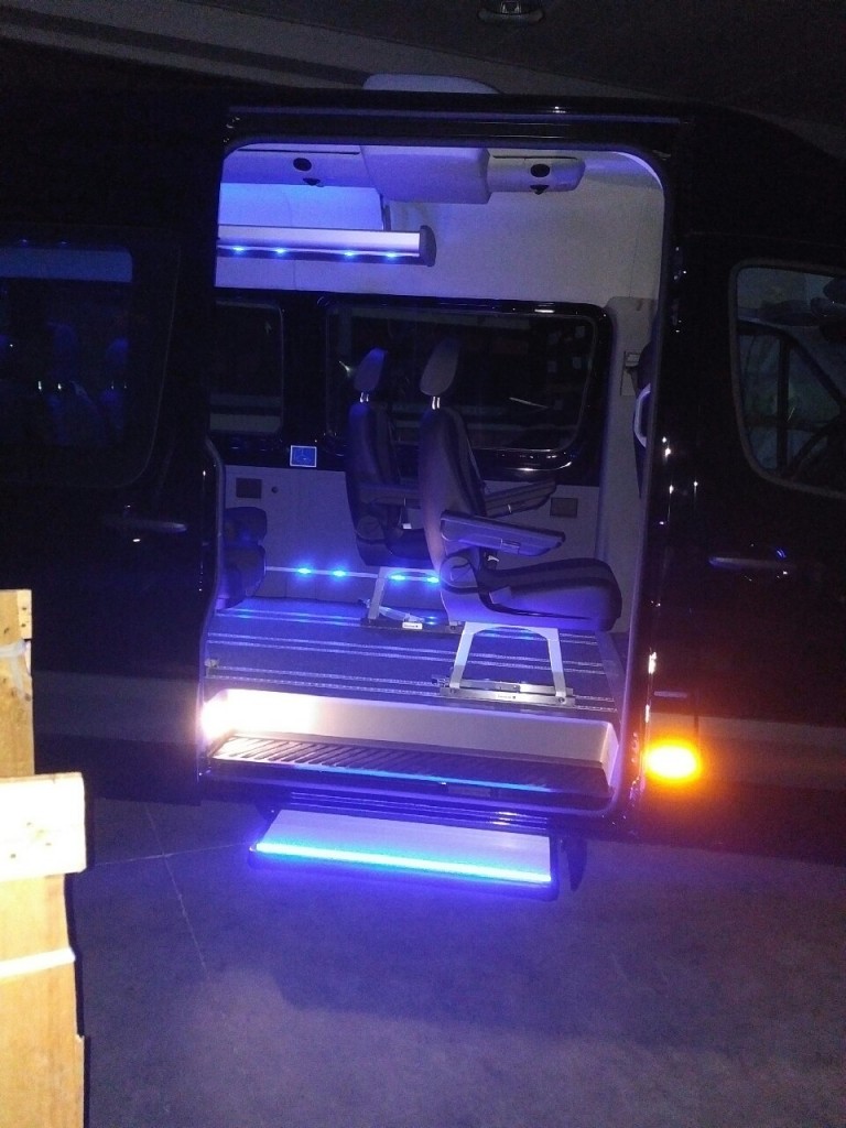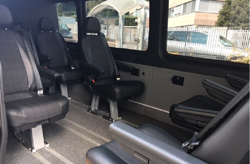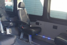 Our Minibuses Mercedes SPRINTER have been modified from a specialized company in order to further improve the comfort (reclining seats, special ambience lights, additional ramp etc...).